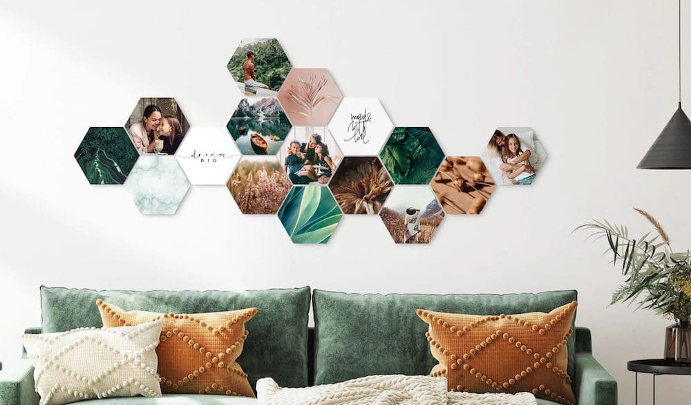 Net als dat je de kunstwerken van je kleintje kunt laten rouleren, kun je dit ook met je foto’s aan de muur doen. De CusttomShapes van herinneringenoplinnen.nl zijn hier ideaal voor! De shapes zijn verkrijgbaar in drie vormen, maar met de hexagon vorm krijg je een heel speels effect. En omdat je wil rouleren, kun je de foto’s heel makkelijk verwisselen of natuurlijk uitbreiden! Zo kun je bijvoorbeeld ieder jaar een collectie maken van je vakantie en deze aan de muur hangen. Wat ook zo fijn is aan dit ophangsysteem, is dat je niet hoeft te boren in je muur.