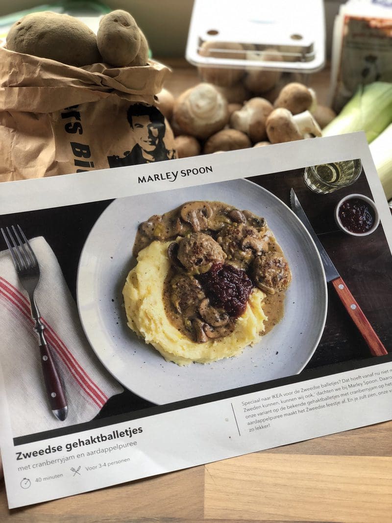 De Zweedse ballen zijn sowieso altijd een succes. Ook deze van Marley Spoon. Zelfs het feit dat de gehaktballetjes in de saus lagen, was geen probleem. Ook hier kon ik de aardappelpuree en de cranberryjam apart serveren, waardoor de keuze om op te scheppen volledig bij de kinderen lag.