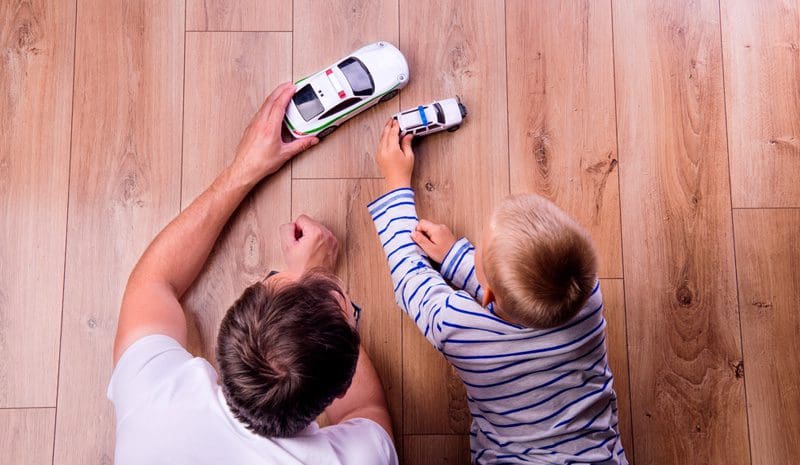 Inmiddels wonen wij nu zo’n 13 jaar in ons huis. Drie jaren van de dertien was dat zonder kinderen. We waren zelf nog jong, al zeg ik het zelf. En we werkten allebei de hele week. Veel waren we dus niet thuis en de parket houten vloer bleef er dan ook prachtig bij liggen. Maar toen kwamen de kinderen en onze vloer ging hard achteruit. Parket was niet de meest kindbestendige vloer die er was. Door de loopwagentjes en speelgoed autootjes sprong de toplaag er spontaan vanaf. Later kwamen daar de knutselactiviteiten nog bij, wat op zich geen probleem was. Maar het schoonmaken van de gevallen kwasten naderhand, was ook een behoorlijke aanslag op de al ietwat versleten vloer.