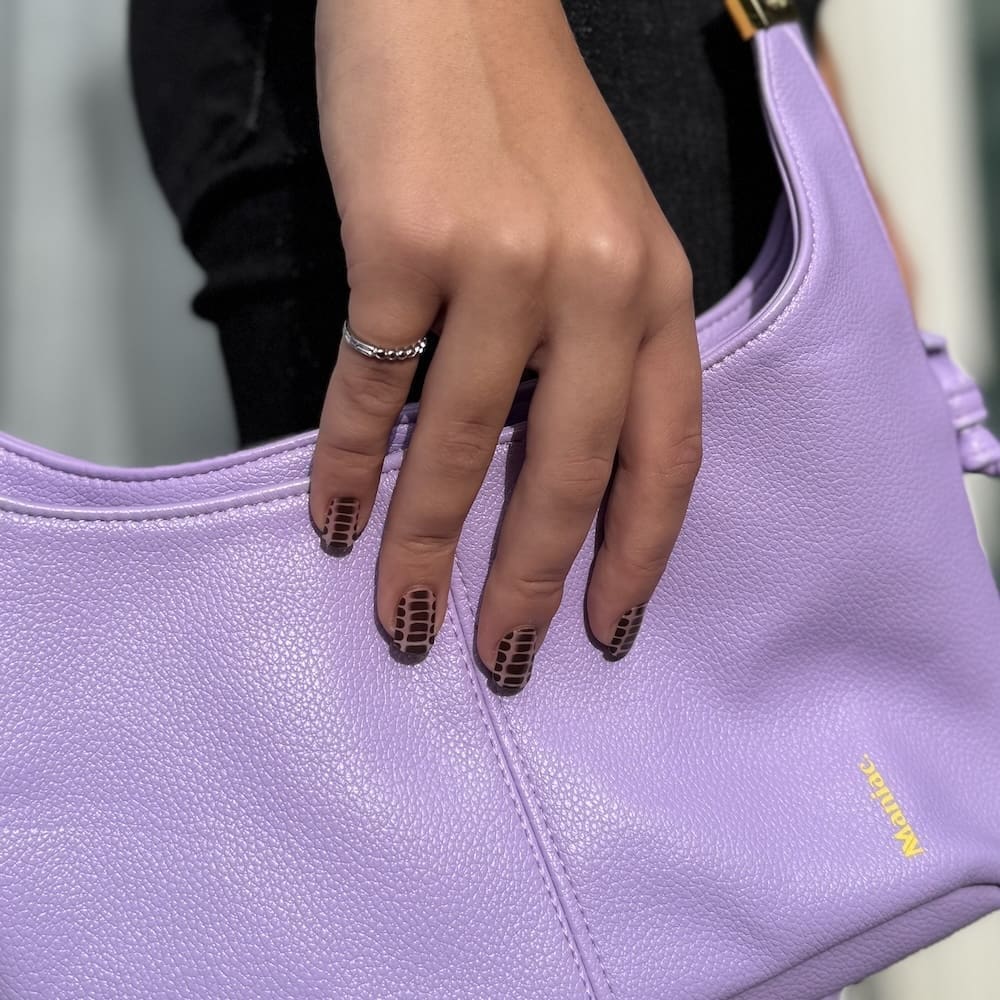 Het is een donkerbruine turtle nail art met een mooie warme, bijna chique uitstraling. Een beetje mysterieus ook. Dit is zo’n design waarvan je denkt: hoe hebben ze dat zó precies op een sticker gekregen?