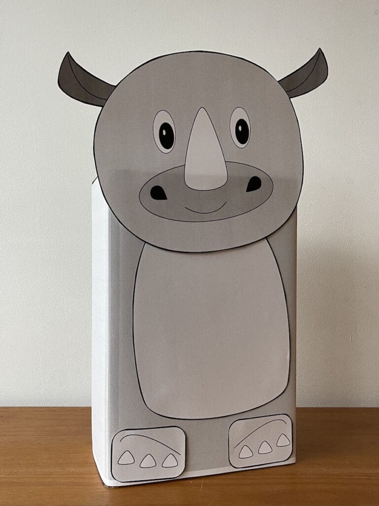 Je hoeft echt niet te gaan zitten knoeien met papier maché en verfklodders. Met deze printable en een schoenendoos kom je ook al een heel eind. Nu denk je misschien, maar neushoorns zijn toch grote, krachtige dieren? Klopt, maar voor het maken van een neushoornsurprise is eigenlijk de kenmerkende hoorn op zijn snuit het belangrijkste. En met deze printable wordt het beestje bijna schattig!