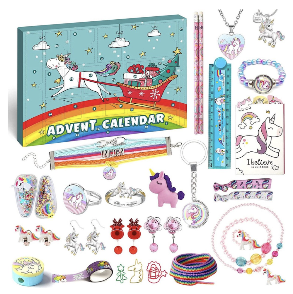 Deze merkloze adventskalender is er ook in een éénhoorn en dino variant. In de adventskalender van de éénhoorn zitten allemaal cadeautjes als potloden, liniaal, gum, nota, puntenslijper en sieraden. En de dino adventskalender zit natuurlijk vol met dino’s.