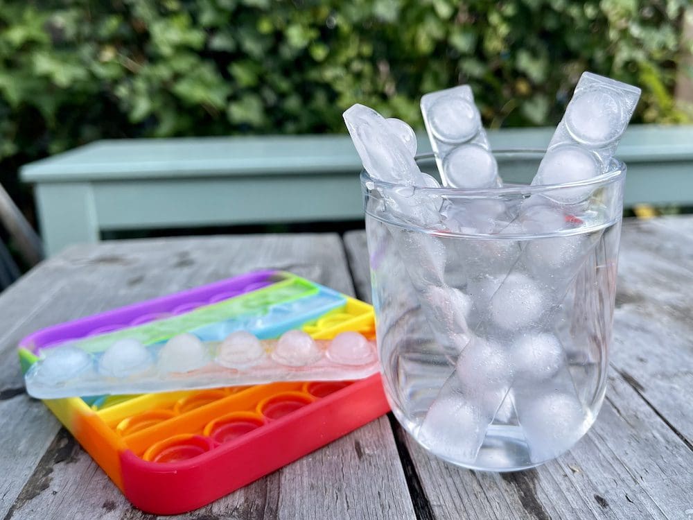 Mijn kinderen zijn dol op ijsblokjes. Een pop-it kun je ook gebruiken als ijsblokjes vorm. Heel simpel; je vult de pop-it met water en legt de pop-it een dagje in de vriezen. Voila, het resultaat zijn unieke pop-it ijsblokjes (of staafjes)