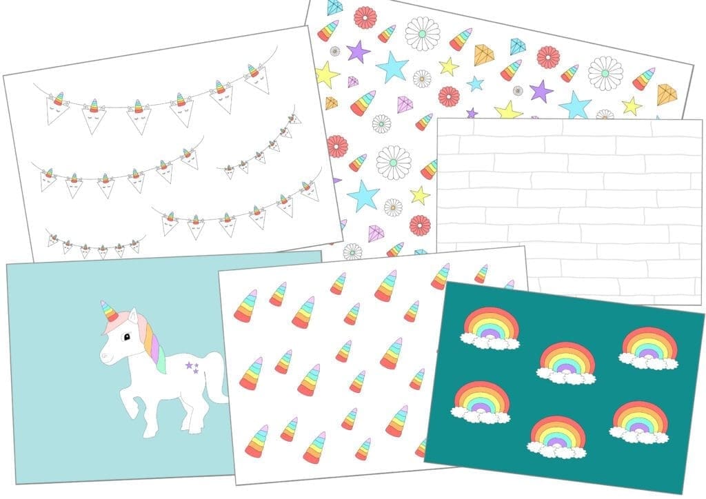 Ben je helemaal dol op deze prints en wil je ook graag een poppenhuis in éénhoorn stijl pimpen? Dan kun je in onze printshop het printable pakket bestellen. Nadat je betaald hebt, ontvang je deze zes verschillende printables in je mailbox. Je kiest er zelf voor welke je uitprint en hoe vaak. Je print de vellen behang uit op A4 papier en afhankelijk van je poppenhuis, knip je het behang zelf op maat.