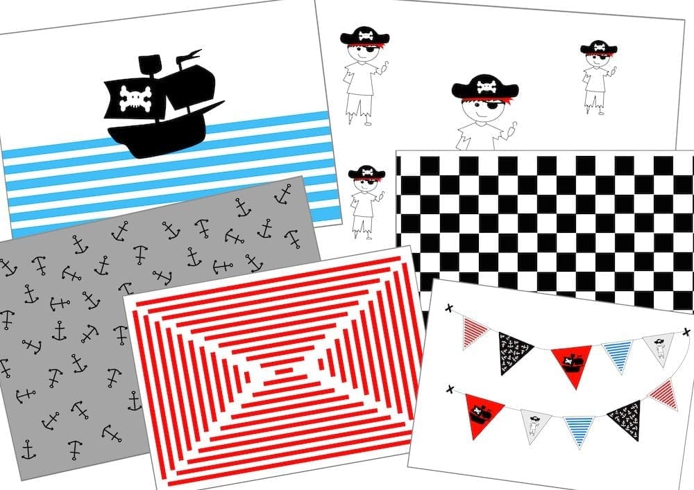 Gek op deze prints en wil je ook graag een poppenhuis in piraten stijl pimpen? Dan kun je in onze printshop het printable pakket bestellen. Nadat je betaald hebt, ontvang je deze zes verschillende printables in je mailbox. Je kiest er zelf voor welke je uitprint en hoe vaak. Je print de vellen behang uit op A4 papier en afhankelijk van je poppenhuis, knip je het behang zelf op maat.