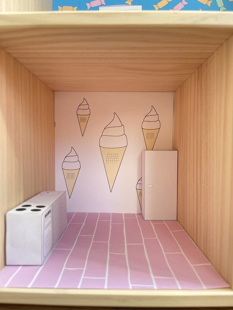 Wil je een poppenhuis omtoveren naar een candy poppenhuis? Dan kun je in onze printshop het printable pakket bestellen. Nadat je betaald hebt, ontvang je deze zes verschillende printables in je mailbox. Je kiest er zelf voor welke je uitprint en hoe vaak. Je print de vellen behang uit op A4 papier en afhankelijk van je poppenhuis, knip je het behang zelf op maat.