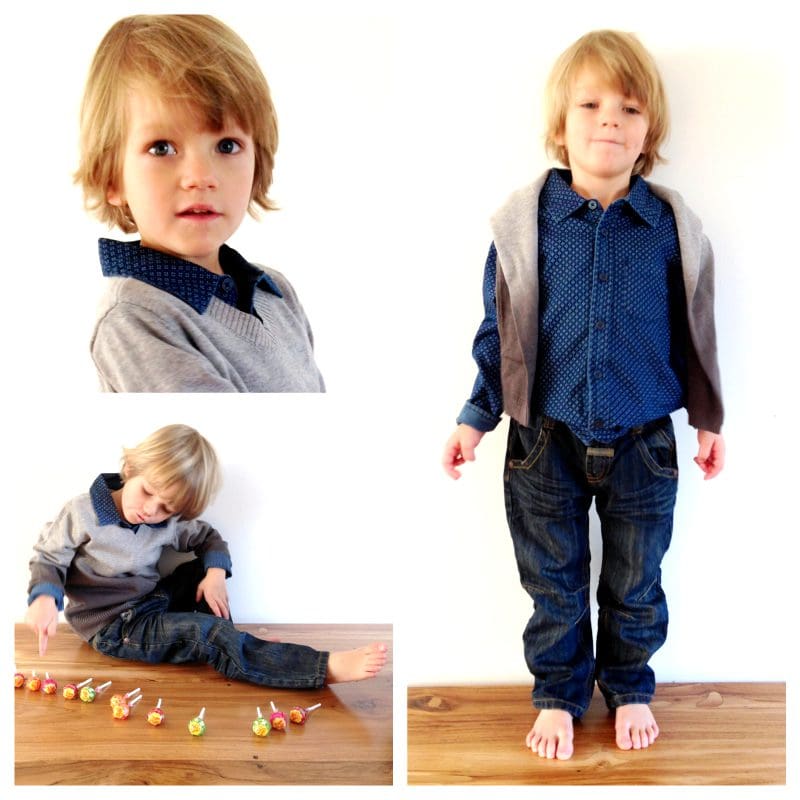 Toch draagt de peuter hier heel iets anders. Baggy en stijlvol zijn gecombineerd. Het Toby overhemd, met een fijne all-over print, heeft gave vintage denim accenten. Bijvoorbeeld als je de mouwen omvouwt. De trui Xippe, maakt, met het kraagje van het overhemd, mijn minipeuter een keurig ventje. Bovendien is de fijn gebreide katoenen trui over het overhemd heen heerlijk warm voor de koudere dagen in de winter. Door deze bovenkleding te combineren met een baggy jeans (Berend), maakt het algehele plaatje een stoere combi met een klassiek tintje.
