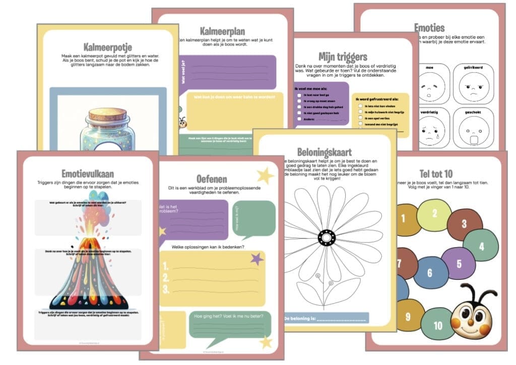 Alle onderdelen van de toolkit zijn met zorg ontworpen en klaar om te printen. Zo kun je ze meteen gebruiken aan de keukentafel, in een rustig hoekje of voor onderweg. Perfect voor ouders, opvoeders en ook professionals die met kinderen werken.