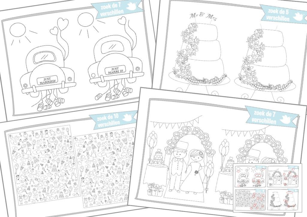 Kortom, het vermaken van kinderen met printables op een bruiloft is een leuke en educatieve manier om kinderen bezig te houden en betrokken te laten voelen bij het feest. En dus hebben we vier leuke ‘zoek de verschillen’ printables gemaakt voor de kinderen op je bruiloft.