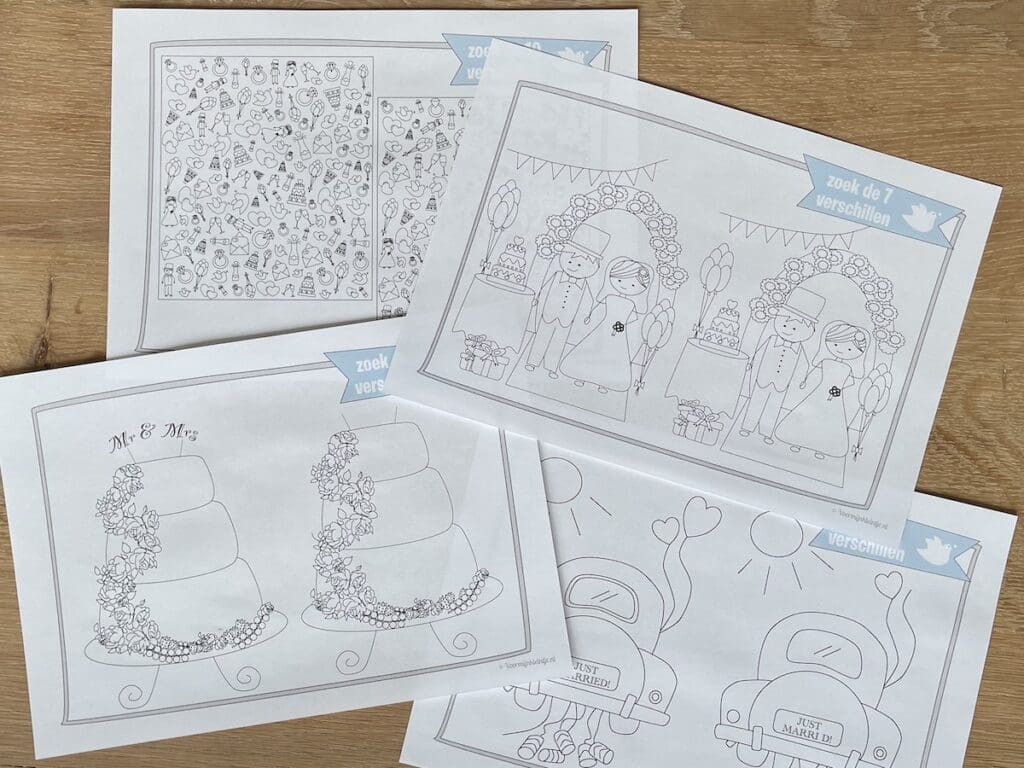 Deze activiteiten zijn gerelateerd aan het thema trouwen en bevatten afbeeldingen van een bruid en bruidegom, bloemen, ringen en dat soort symbolen die met een bruiloft te maken hebben. Zo hebben we eerder al een heel knutsel pakket voor peuters gemaakt en natuurlijk is ons doe-boekje een must have geworden voor je bruiloft.