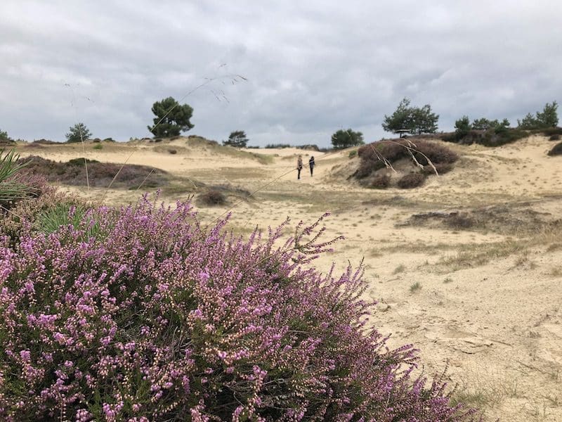 De Kale Duinen is een uitgestrekt gebied met zandverstuivingen. Dit soort natuurgebieden komen niet veel voor in Nederland. Mijn kinderen vragen zich dan ook af waarom er hier duinen zijn? We zitten immers toch niet aan de kust? We zoeken het even bij Wikipedia op. Maar heel belangrijk vinden ze het antwoord niet, want ondertussen liggen ze al te rollen door het zand.