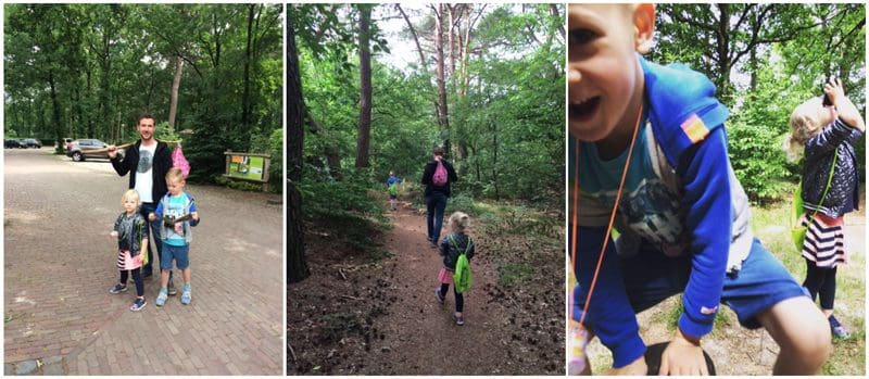 We beginnen met de spannende kidsroute wandeling door het bos bij de Rheezerbelten.