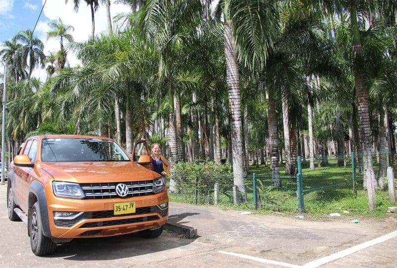 Van de drie weken dat wij in Suriname waren, hebben we tien dagen een auto gehuurd. Om in Suriname auto te kunnen rijden, moet je wel eerst wat voorbereidingen treffen. Zo heb je een internationaal rijbewijs nodig, deze kun je kopen bij de ANWB. Daarnaast moet je er ook rekening mee houden dat het verkeer in Suriname compleet anders is, tenminste als ik de verschillende blogs die ik van tevoren las moest geloven. Feit is wel dat ze in Suriname links rijden. En ik moet toegeven, dat vond ik toch wel even spannend. Wat me al een hele geruststelling gaf, was dat we onze huurauto bij Sunny Cars gehuurd hadden. Bij Sunny Cars ben je namelijk all-in verzekerd wanneer je een auto huurt. En zo’n all-in verzekering geeft toch wat extra rust wanneer je in een ‘vreemd’ land links moet rijden. Maar goed, het bleef spannend om achter het stuur te kruipen. Ik heb de eerst paar dagen het auto rijden dan ook lekker aan de man overgelaten. Maar al snel bleek dat het autorijden in Paramaribo echt prima te doen was. We hadden een grote pick-up gehuurd, welke mede dankzij zijn kleur ook nog eens extra goed opviel. We hadden dus een heel goed overzicht over de weg. Het verkeer in Suriname wekt misschien een chaotische indruk. Vergeleken met Nederland zijn de wegen niet al te best en zeker in Paramaribo is het druk op de weg. Maar het verkeer in Suriname is precies zoals de cultuur is, namelijk heel relaxt! Er zijn nauwelijks opgefokte automobilisten op de weg. Voorrang nemen waar het eigenlijk niet de bedoeling is, is geen enkel probleem. Het gaat zoals het gaat, no spang! En dus durfde ik het na een dag of drie ook wel aan om door Paramaribo te rijden.