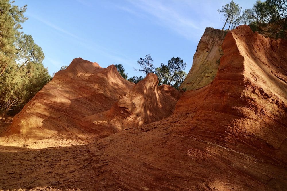 Ik heb zelf nog nooit in het Amerikaanse Colorado bezocht, maar als ik de Fransen moet geloven kunnen zij een klein stukje van die bijzondere landschap evenaren. In het zuid Franse Luberon, ergens tussen Roussillon en Rustrel, bevindt zich namelijk een gebied van rode rotsen. Okergroeven worden ze ook wel genoemd. Of ja, Colorado van de Provence.
