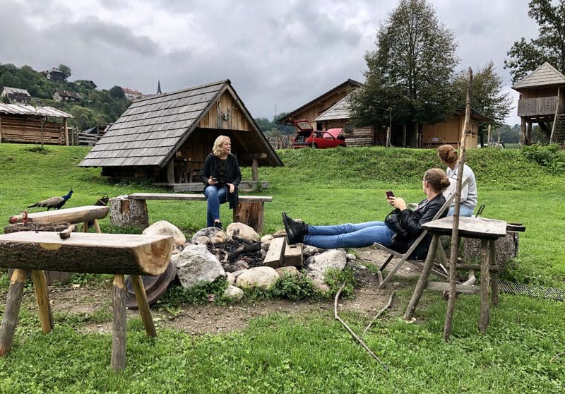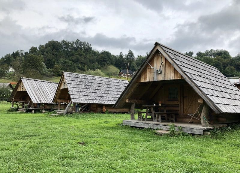 De volgende dag rijden we richting Bled. Bled is behoorlijk toeristisch, maar omdat het toch ook wel een prachtige omgeving is, moeten we er natuurlijk wel een kijkje nemen. We doen een poging om via camping Bled hét uitzicht over het meer met het eilandje te zien, maar helaas lukt dat door een afgezette weg vanwege een wielerwedstrijd niet. Onze overnachting in de buurt van Bled hebben we ook via Airbnb. Onze eerste ervaring was inmiddels goed bevallen, dan zal de tweede ook wel goed komen was ons idee. Vanuit Bled rijden we richting Radovljica, hier zal onze Airbnb te vinden zijn aan de Sava rivier. Bij aankomst kreeg ik direct het gevoel op kamp te zijn, nu heb ik kamp altijd leuk gevonden, dus dat was geen probleem. Er staan een aantal houten hutjes, een tipi tent en in het midden een kampvuur. Ook is er een boomhut te vinden op het terrein. Er lopen wat dieren rond en op de achtergrond kabbelt de Sava rivier. Ik denk dat dit echt een fantastische plek is om met kinderen te verblijven. Na de ontmoeting met de eigenaar en een Sloveense snaps treden we in de houten bungalow waar we overnachten. Dat het toilet en douche een gezamenlijk hok buiten de bungalow is, was me in de omschrijving even ontgaan. Maar ach, wij zijn ervaren kampeerders, dus dit kunnen wij!