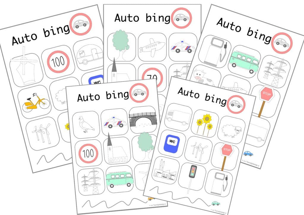 - Een toffe auto bingo met vijf verschillende bingo kaarten