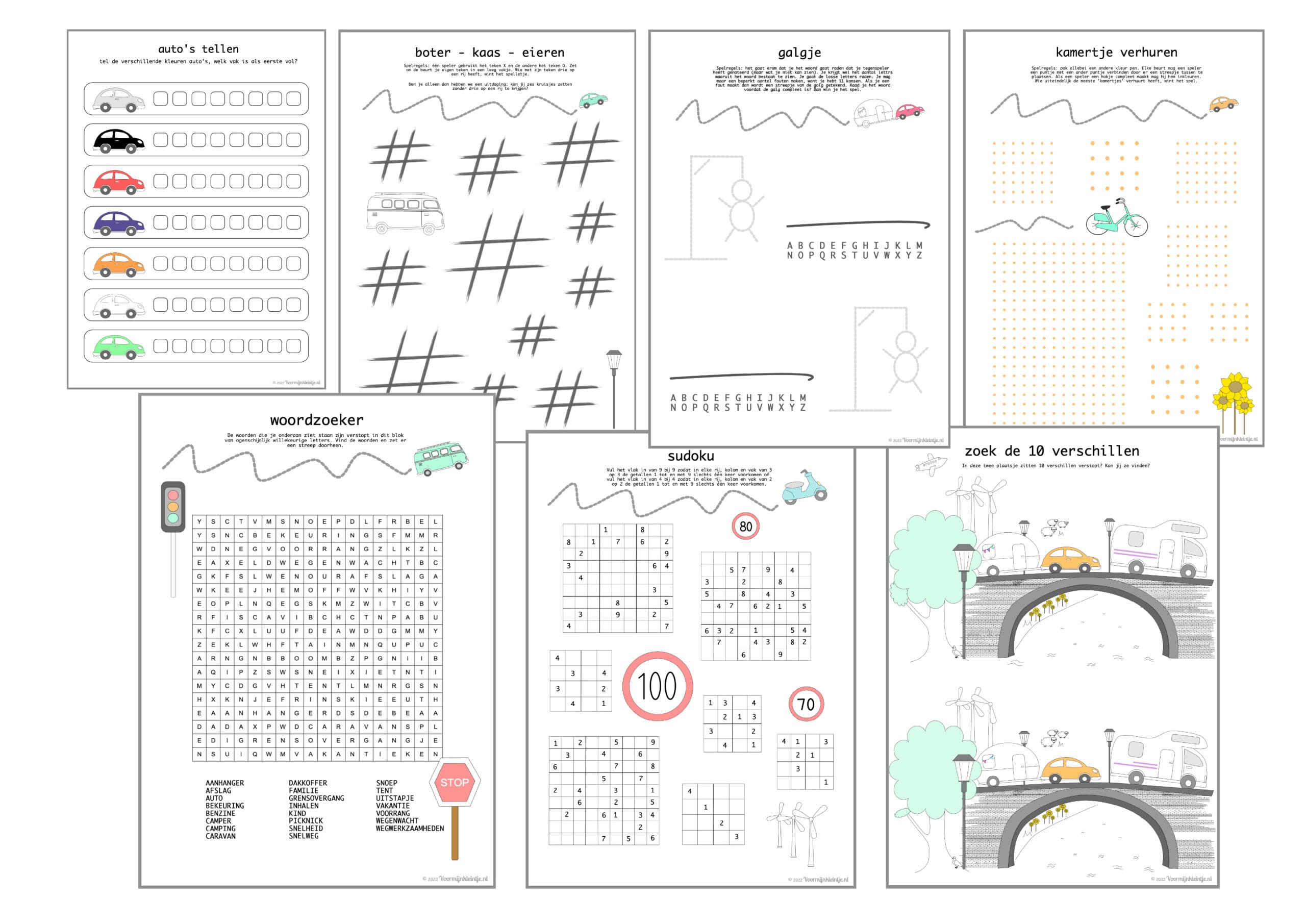 En soms wil je dat je kind zich even alleen in de auto gaat vermaken. Daar zijn de printables van de woordzoeker, zoek de verschillen en sudoku ideaal voor. Het zijn spelletjes die leuk zijn voor de afwisseling tijdens de reis en waar je kleintje wel even mee bezig is.
