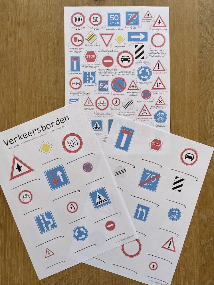 Naast de verkeersborden bingo hebben we ook een printable met de betekenissen van de meest voorkomende verkeersborden gemaakt en daarbij een printable met verkeersborden waar de betekenis nog ingevuld moet worden. Nog super leerzaam ook dus!