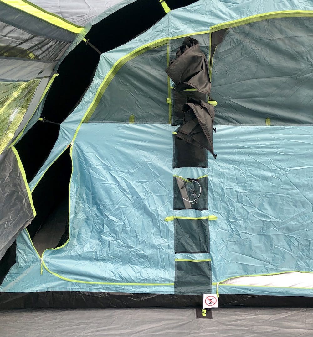 Maar dat is niet het enige voordeel, dit systeem zorgt er namelijk ook voor dat je een comfortabele binnentemperatuur behoudt. Zo kunnen de slaapcabines van de tent overdag tot 5 graden koeler zijn en ’s nachts tot 1 graad warmer. Nu moet ik eerlijk bekennen dat wij niet de meest warme nacht hebben uitgekozen om deze familietent te reviewen en die ene graad mij ook echt niet is opgevallen. Maar ik kan mij wel zo voorstellen dat het fijn is om de meeste hitte buiten te houden, wanneer je tent vol in de zon staat. Daarentegen heb ik wel duidelijk ervaren dat het door de BlackOut Bedroom een stuk donkerder was dan dat ik altijd gewend was. En daarmee kan ik concluderen dat dit zeker een rustgevender nachtrust geeft.