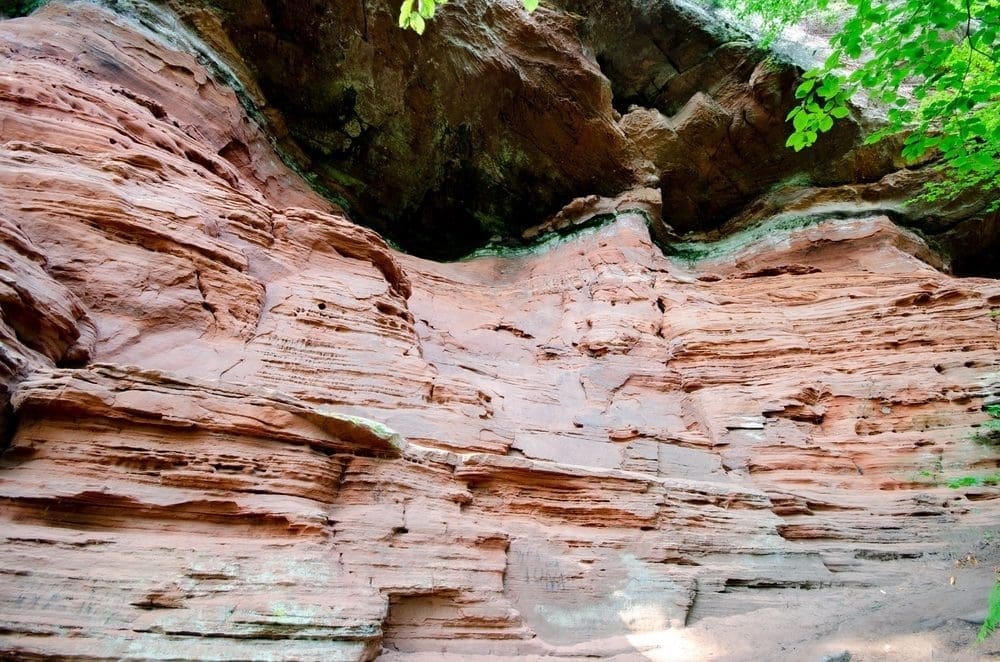 Welke wandeling je echt niet mag missen, is de wandeling bij ‘le rocher du Colorado‘. Dacht ik tot voor kort dat de rode Colorado rotsen alleen maar in het zuiden van Frankrijk te vinden waren, blijken ze ook in de Vogezen te zijn. De wandeling begint bij Roppeviller en is met zijn 7,1 kilometer prima te doen, maar wel een hele unieke belevenis.