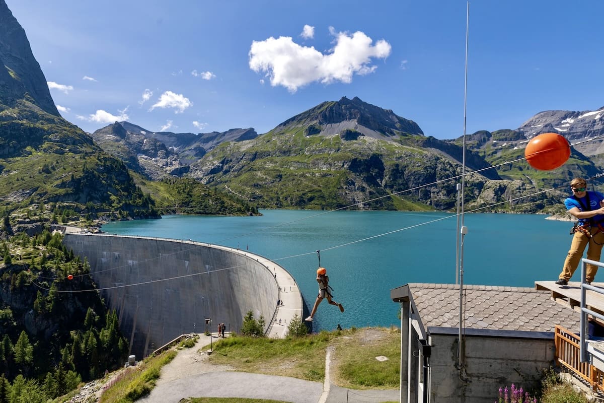 Een van de meest indrukwekkende momenten van onze vakantie was absoluut de zipline langs Barrage d’Émosson, op de grens van Zwitserland en Frankrijk. Daar hang je dan, hoog boven een gigantische kloof, terwijl je in 30 seconden naar de overkant zoeft. Het uitzicht was fantastisch, maar geloof me, met zo’n snelheid heb je nauwelijks tijd om het allemaal in je op te nemen!