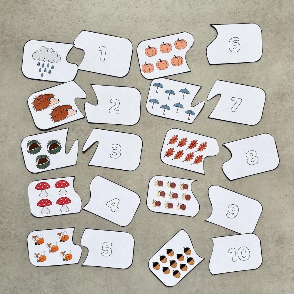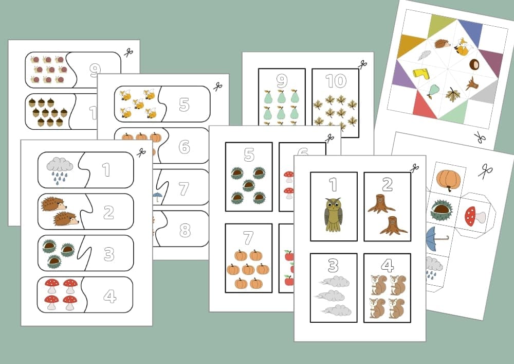 Met de herfst telkaarten leren kinderen tellen, vergelijken en cijfers herkennen.