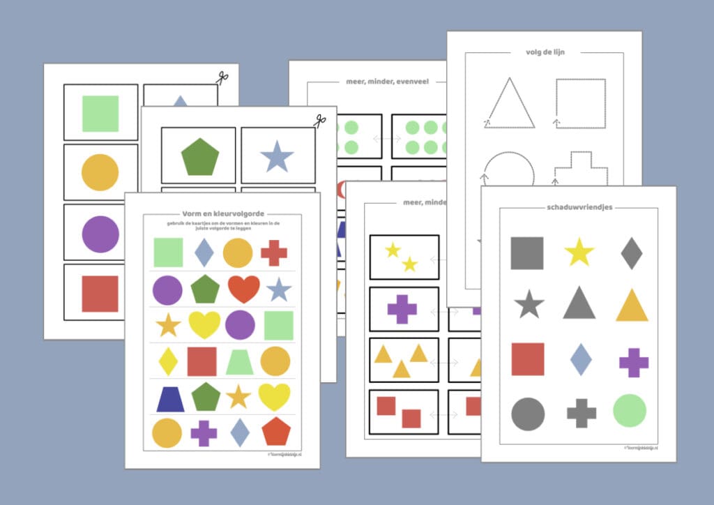 Werkbladen – Een gevarieerde mix aan oefeningen om kleuren, vormen en letters op een speelse manier te ontdekken.